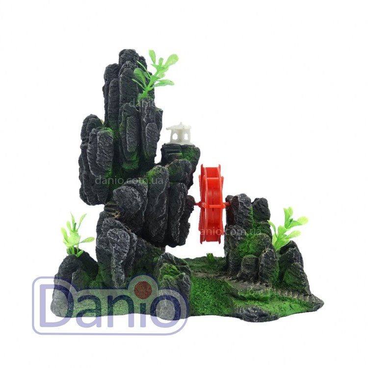Декорация для аквариума Aqua Nova скала с мельницей - это уникальное украшение для Вашего аквариума с эффектом водяной мельницы при подключении компресора.