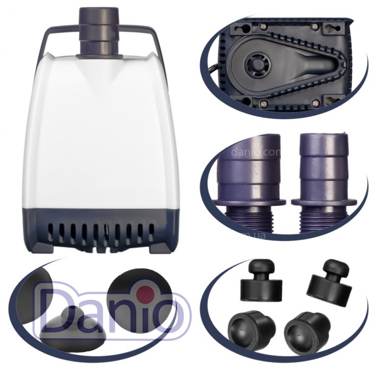Специальная конструкция позволяет производить работы, связанные с откачкой воды практически до нуля из любой емкости, аквариума, отстойника или затопленного подвала. Набор коннекторов, ручка для переноски, 4 резиновые «ножки» и 4 присоски делают насос очень универсальным и простым в использовании.