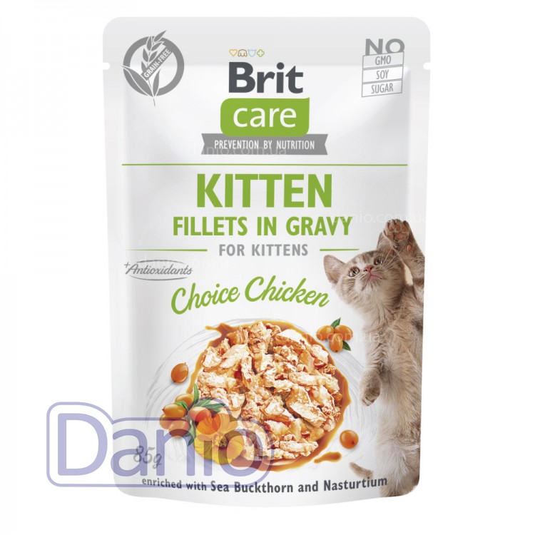 Влажный корм для котят Brit Care Cat Fillets in Gravy Choice Chicken – это премиальный влажный беззерновой корм для котят, который обеспечивает полноценное питание и помогает повысить аппетит и разнообразие рациона.
