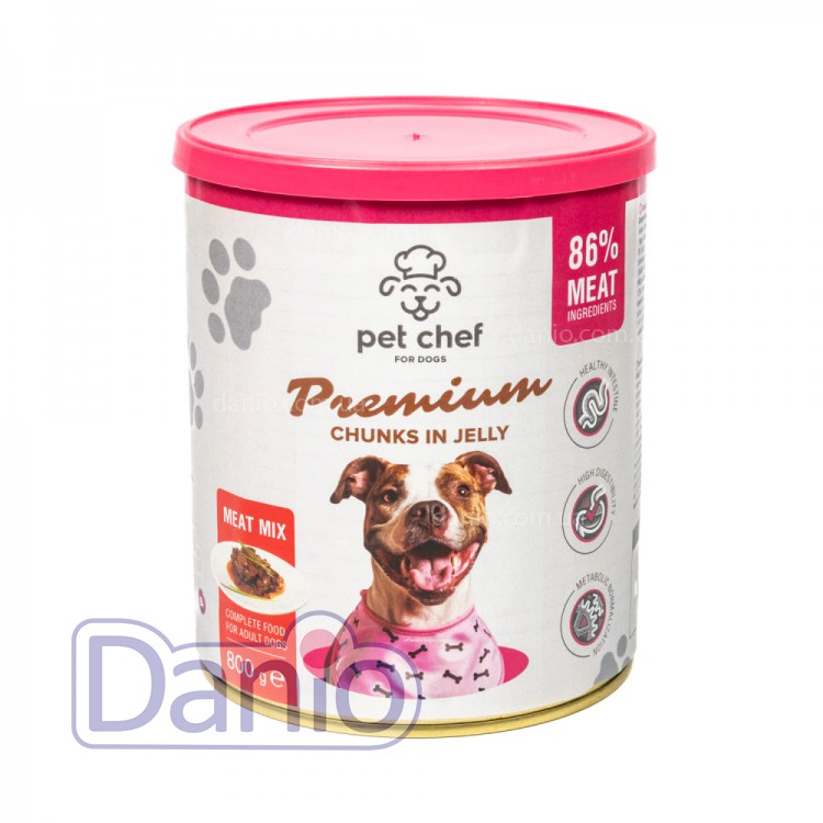 Влажный корм для собак Pet Chef, кусочки в желе Мясной микс, 800 г
