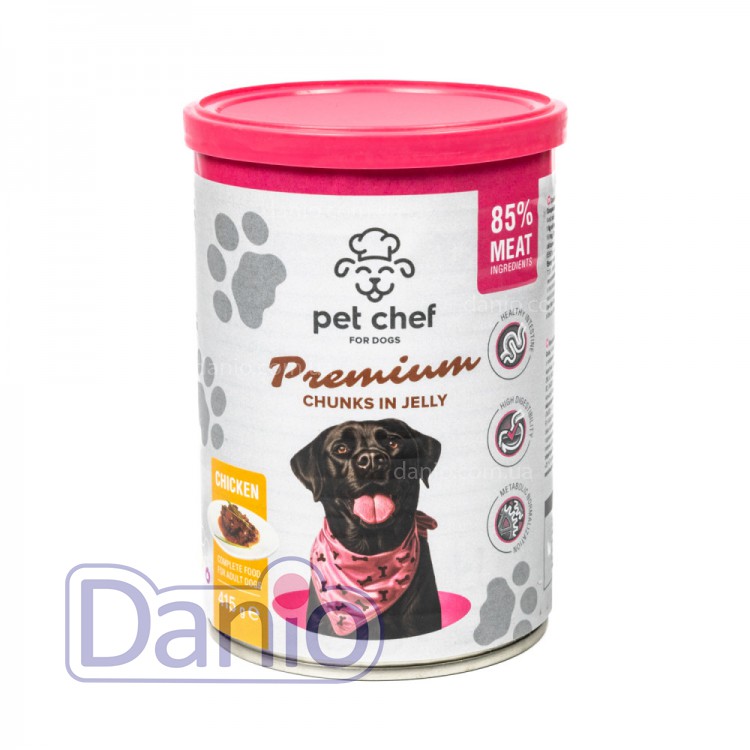 Влажный корм для собак Pet Chef, 415г, кусочки в желе с курицей