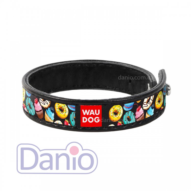 Браслет WAUDOG Design c рисунком Пончики кожа S (ширина 15 мм, длина 18-20 см) черный