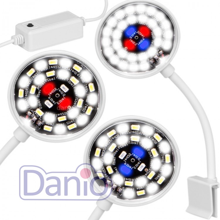 Типы света: Белый (6500К), красный (660 нм), синий (460 нм)