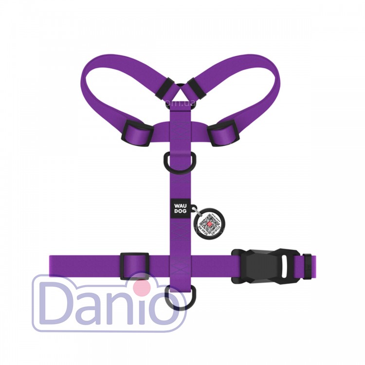 Шлея для собак водостойкая WAUDOG Magnet H-образная S 15мм/32-52см, с QR-паспортом, фиолетовый