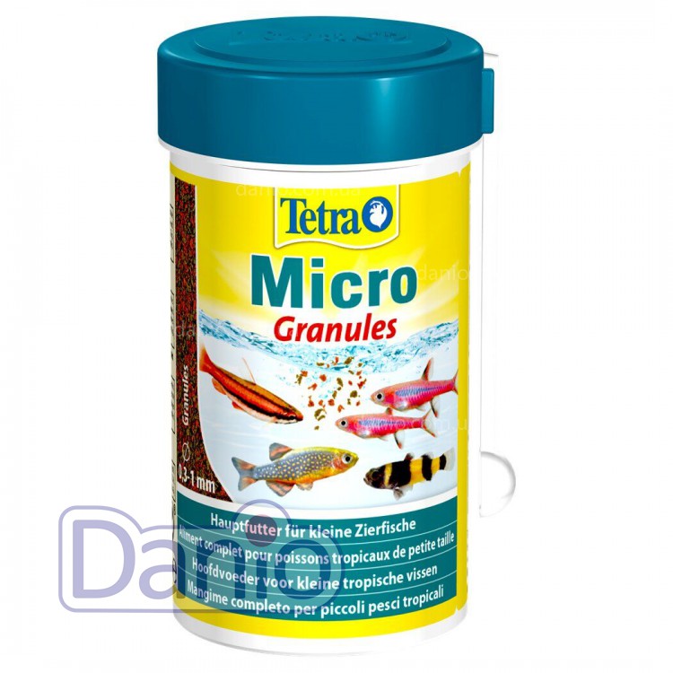 Корм Tetra Micro Granules для самых маленьких декоративных рыб. В интернете Вы можете встретить их под общим названием - "нано рыбки". И настолько маленькие рыбы заслуживали на выпуск соответствующего корма с плавающими микро грунлами, которые со временем промокают и постепенно тонут.