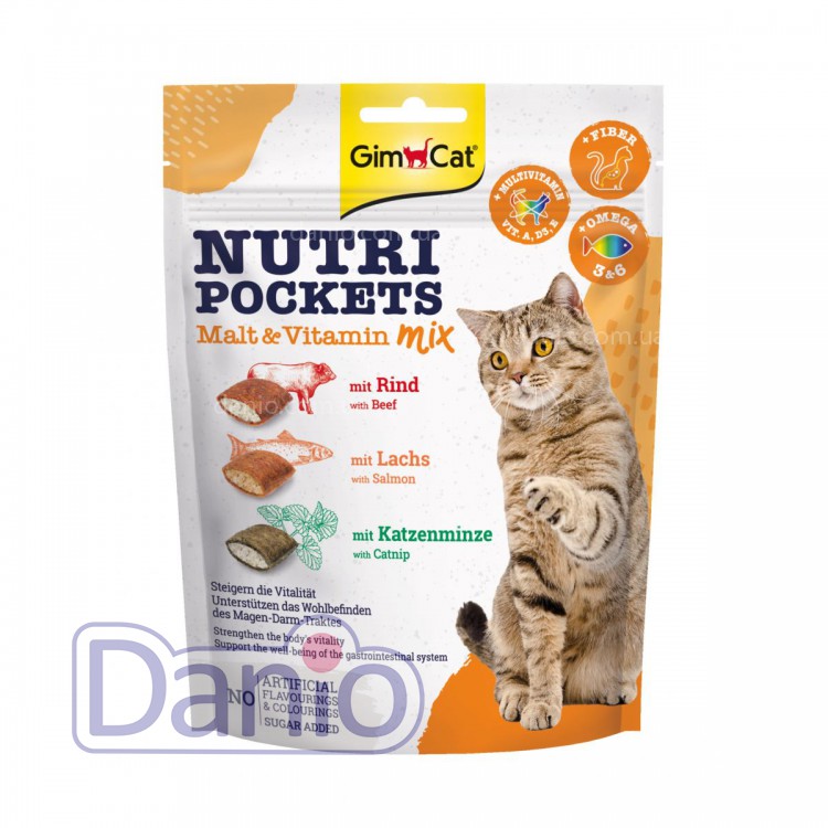Лакомство для кошек GimCat Nutri Pockets Malt & Vitamin Mix - это витаминизированное аппетитное лакомство для кошек в виде хрустящих подушечек с разными начинками.
