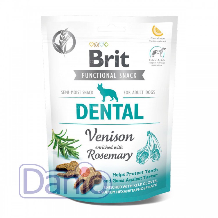 Лакомство для собак Brit Functional Snack Dental - это функциональное полумягкое лакомство супер-премиум класса, для собак с олениной и розмарином для защиты зубов и десен.