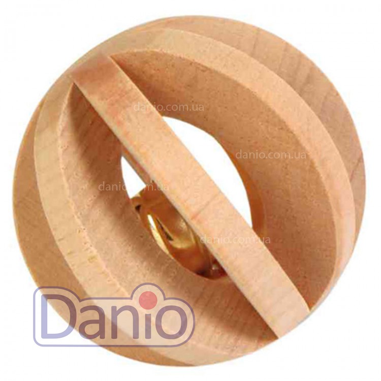 Такая игрушка в виде шара и со звонким колокольчиком внутри станет отличной частью досуга питомца. Шарик благодаря колокольчику внутри побуждает живой интерес питомца и он будет вновь и вновь толкать его пытаясь заглянуть внутрь. Активная игра с шариком точно пойдет на пользу, а за счет громкого колокольчика вы точно будете знать где находится грызун. Также он удовлетворяет потребности любимца в грызении из-за того что состоит из безопасной специально обработанной древесины.