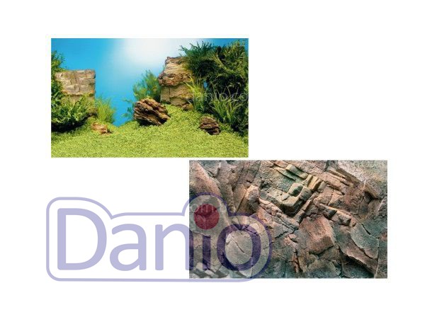 Poster 1 с изображением подводного ландшафта на передней стороне и скалы – на задней стороне – отличный вариант для разнообразного оформления аквариума.
