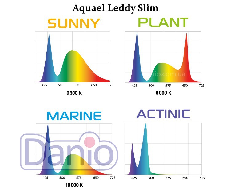 - четыре версии светодиодов (Sunny, Plant, Marine, Actinic).