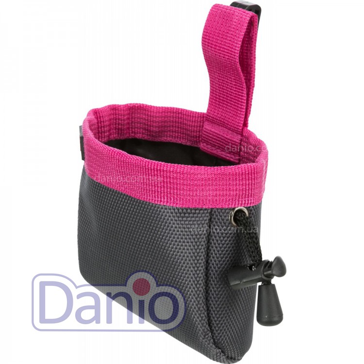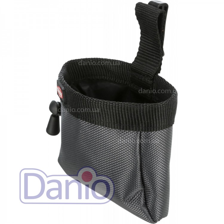 Сумка зроблена із міцного нейлону. Вона легко затягується за допомогою шнура, що регулюється. Також у ній є жорстка кругла вставка для швидкого та легкого доступу до ласощів. Її можна прикріпити на поясний ремінь завдяки кліпси та петлею. Сумка відмінно підходить для ласощів та дуже легко чиститься.
