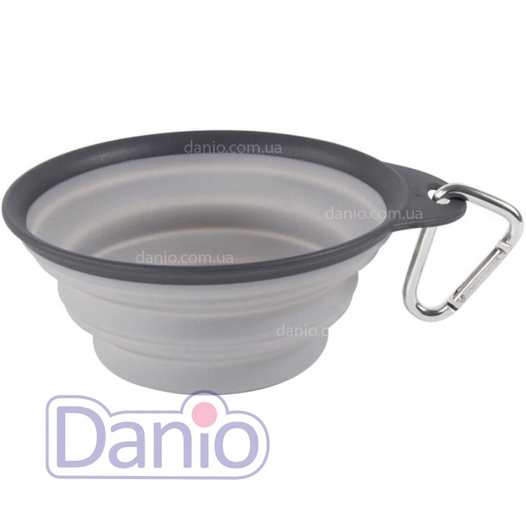 Дорожня складана миска DEXAS Collapsible Travel Cup з карабіном 480мл, для собак, світло-сіра