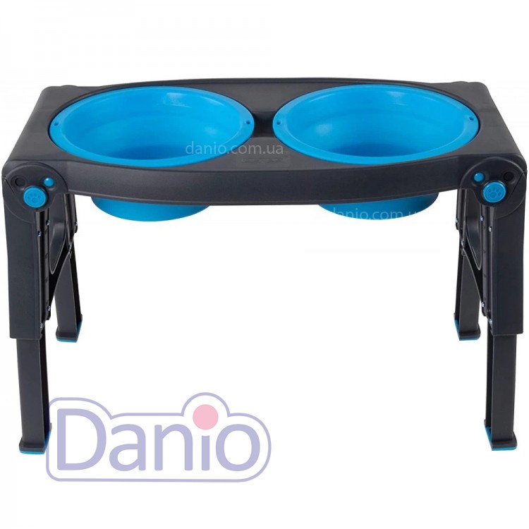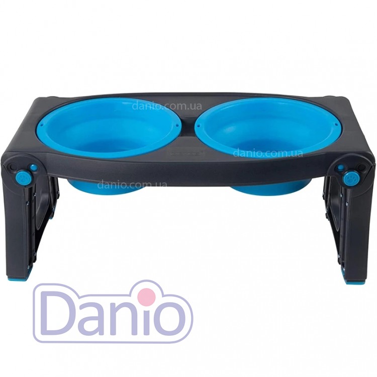 DEXAS Adjustable Height Pet Feeder - подвійна миска з регульованими ніжками, які можна піднімати або опускати в залежності від зростання вашого вихованця. При транспортуванні та зберіганні ніжки підставки можна повністю скласти, щоб досягти максимально компактних розмірів. Миски можна виймати і мити в посудомийній машині, виготовлені з гнучкого харчового матеріалу TPE (Thermoplastic elastomer). Миски можна складати до компактних розмірів.